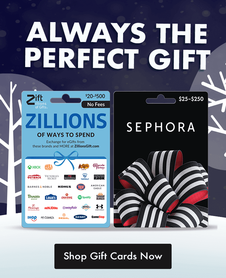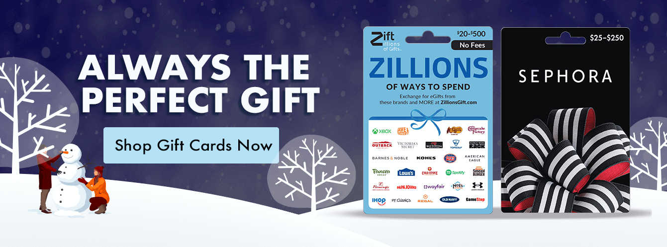 We have a perfect gift for your partner, family, friends, or your boss all in one place. American Express, Vanilla Visa® and Mastercard® Gift Cards come in a variety of designs to offer something for everyone. Or you can choose a card based on the recipient’s interests, like shopping, dining, traveling and much more. Our gift cards are a perfect gift because they send the right message, every time.